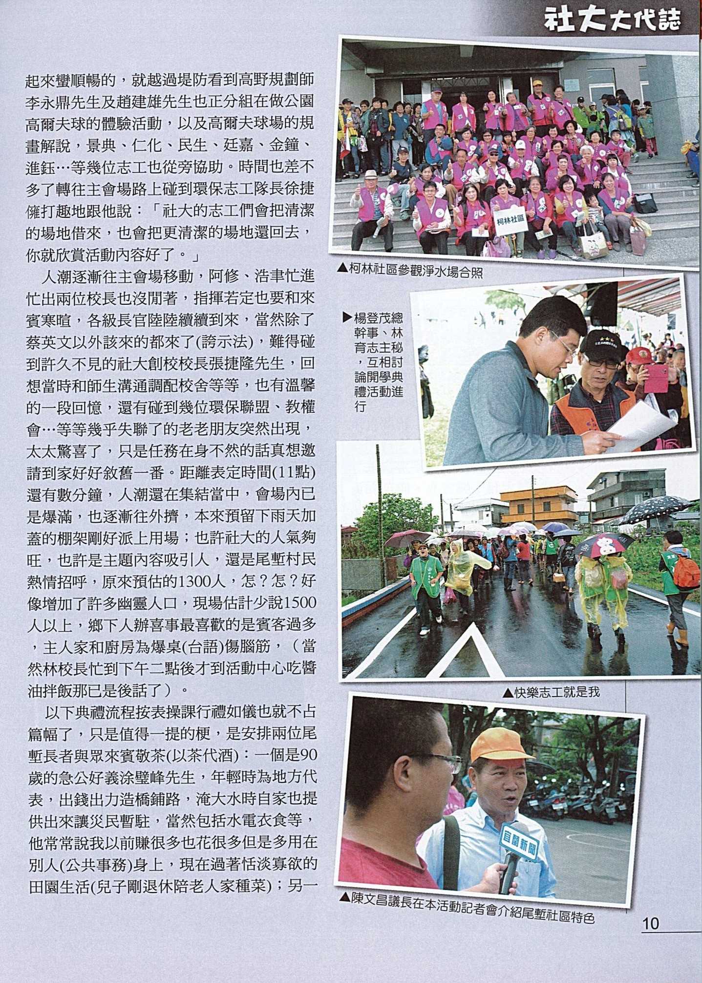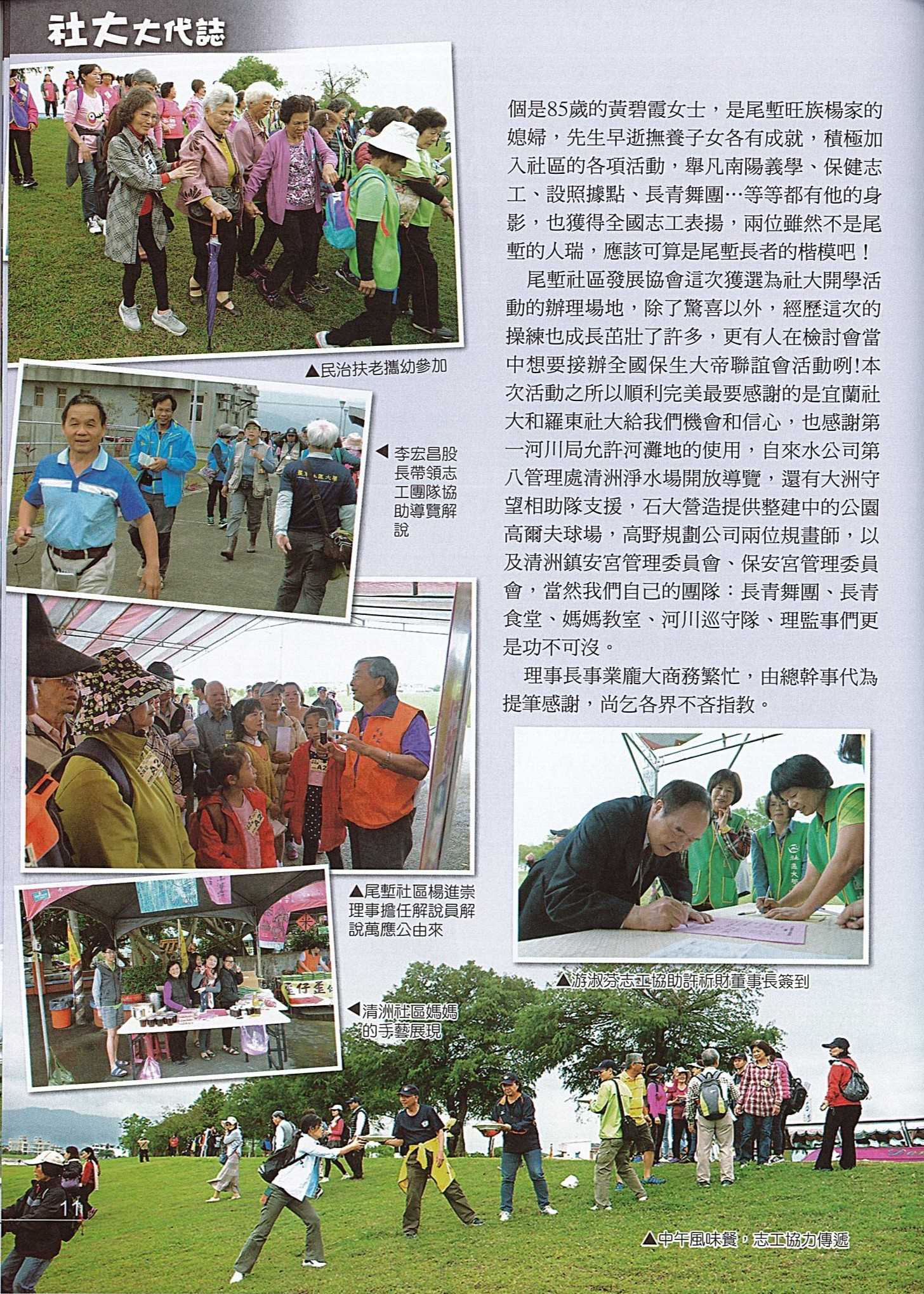 (一)透過活動辦理讓社區大學與社區建立夥伴關係,並利用巡禮、體驗…等方式,讓社大講師、學員關懷在地社區的土地與生態等,了解社區之文化及特色。